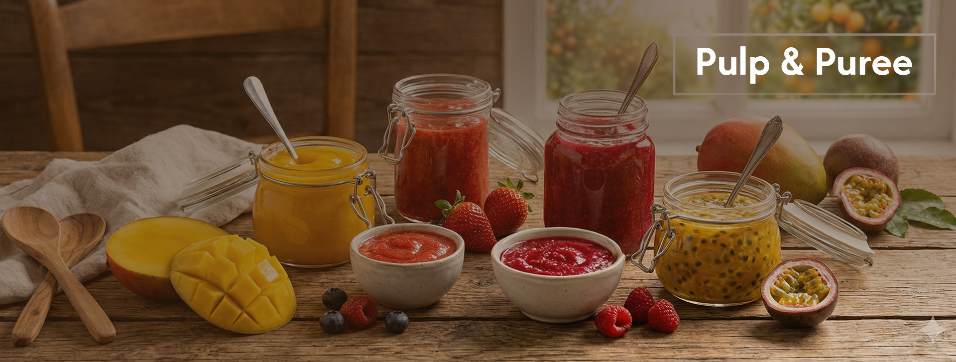 Pulp & Puree are smooth fruit or vegetable extracts used to add flavor and nutrition to food and drinks.